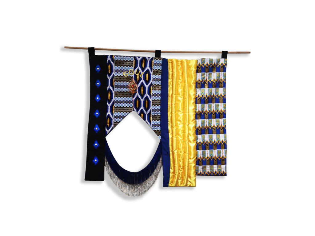 Aïda Schweitzer 2025 – Tissus assemblés, broderies, frange 111 x 89,5 cm – 𝐸𝑥𝑝𝑜 2025 𝑂𝑠𝑎𝑘𝑎: 𝐿𝑒 𝑝𝑎𝑣𝑖𝑙𝑙𝑜𝑛 𝑑𝑢 𝐺𝑟𝑎𝑛𝑑-𝐷𝑢𝑐ℎ𝑒́ 𝑑𝑒 𝐿𝑢𝑥𝑒𝑚𝑏𝑜𝑢𝑟𝑔