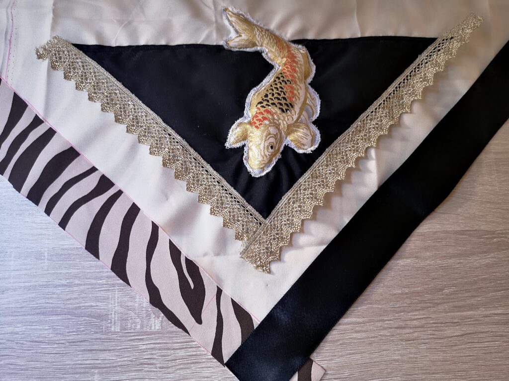 Au fil de cette période, j’ai partagé des fragments de mon processus — images, vidéos, textes — explorant des matières et textures intimement liées à mes origines franco-égyptiennes et chaïouies. Les franges, en particulier, tissent un pont entre mémoire personnelle et univers textile, traduisant à la fois le geste et l’histoire. Le projet s’est déroulé en deux temps : une phase initiale de production à Luxembourg, suivie d’une phase en résidence au Japon, donnant naissance à un assemblage de pièces hybrides, reflet de la mixité de deux territoires, de deux temporalités de création et de mes héritages culturels.