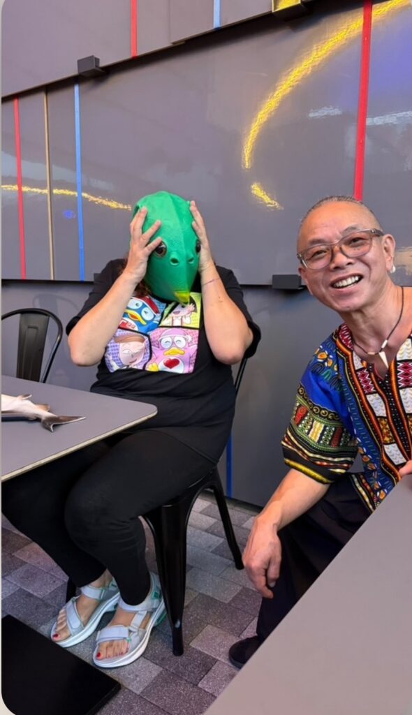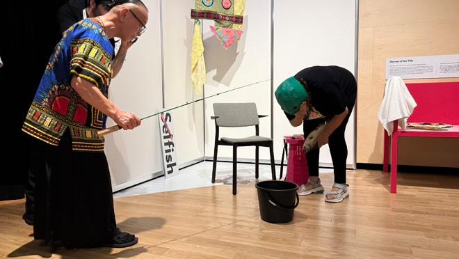 joyeux, maladroit et/ou contemplatif, où l’on célèbre ensemble le sacre du poisson. Un coin immersif pour se glisser dans les écailles de la vie, sur fond d’ une oeuvre de l’ artiste. “BE Self / BE Fish” invite les visiteur·euse·s à poser avec l’artiste — seul·e, entre ami·e·s ou en famille — dans le coeur de l’art. Entre selfie et autoportrait, chacun·e peut incarner, l’espace d’un instant, le poisson sacré.